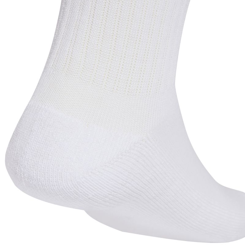 Skarpety adidas Linear Crew Cushioned Socks 3 Pairs białe KD1717 Sportowe skarpety adidas. Miękka dzianina z wysoką zawartością bawełny. Dopasowany fason do łydki. Elastyczny, wysoki ściągacz nie powoduje uczucia ucisku i stabilizuje skarpety. Skarpety adidas z subtelną nazwą brandu. Zestaw zawiera 3 pary skarpet. Materiał: 75% bawełna, 40% poliester pochodzący z recyklingu, 3% elastan, 1% poliamid pochodzący z recyklingu