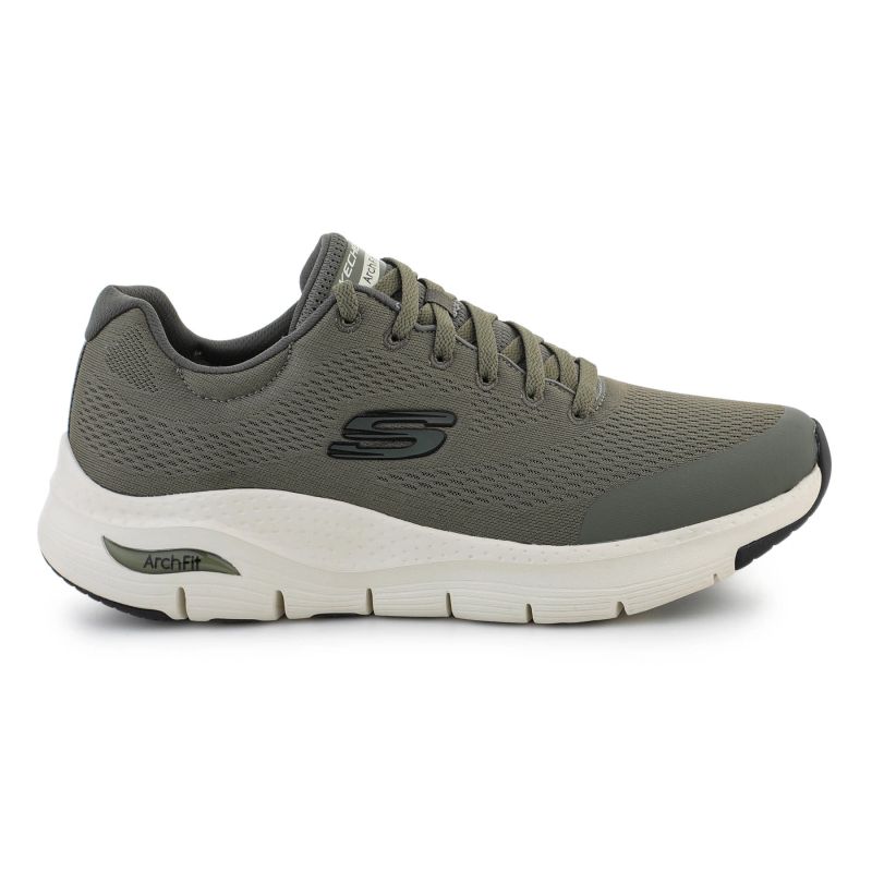 Buty Skechers Arch Fit 232040-OLV Olive to propozycja dla mężczyzn, którzy cenią sobie maksymalny komfort noszenia i stabilne podparcie stóp w czasie dnia. Model wyposażono w opatentowaną technologię Arch Fit®, czyli system wkładek z podparciem łuku stopy certyfikowanym przez podiatrów, opracowany na bazie ponad 20 lat badań i ponad 120 000 skanów stóp — co pomaga w redukcji wstrząsów, równomiernym rozkładzie ciężaru oraz podniesieniu komfortu chodzenia.