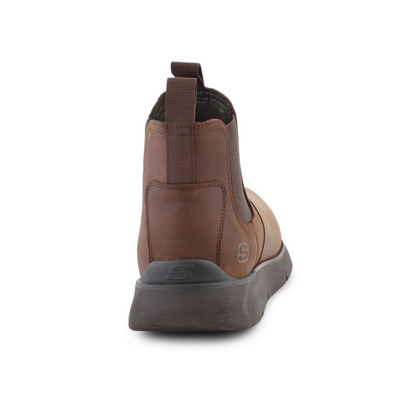 Model Skechers Augustino – Paulo 205227-CHOC to połączenie ponadczasowego designu i dużego komfortu noszenia. Cholewka została wykonana ze skóry oraz materiału tekstylnego, co zapewnia trwałość i elastyczność. W bocznych partiach znajdują się panele typu „dual gore”, które ułatwiają zakładanie i dopasowanie obuwia.