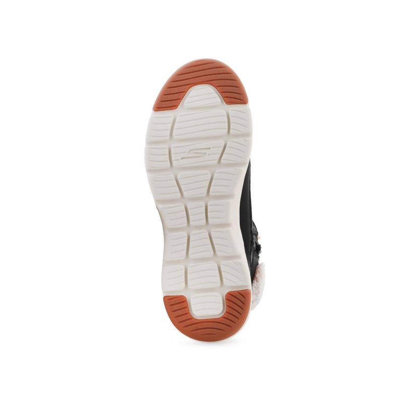 Buty mają wysoką cholewkę z syntetycznym futerkiem wokół kostki oraz wewnątrz, co zapewnia ciepło i przytulność. Wkładka to Skechers Air-Cooled Goga Mat™, która zapewnia lekką, sprężystą amortyzację i wentylację.