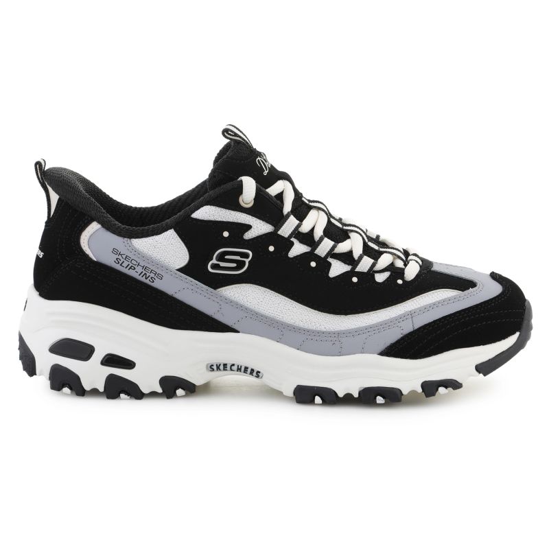 Skechers Slip-ins Sport D’lites to nowoczesne buty lifestyle zaprojektowane z myślą o maksymalnej wygodzie i szybkim zakładaniu bez użycia rąk. Technologia Slip-ins umożliwia łatwe wsunięcie stopy, zapewniając jednocześnie stabilne trzymanie pięty. Cholewka wykonana z połączenia materiałów tekstylnych i syntetycznych gwarantuje trwałość, dobre dopasowanie oraz sportowy wygląd.