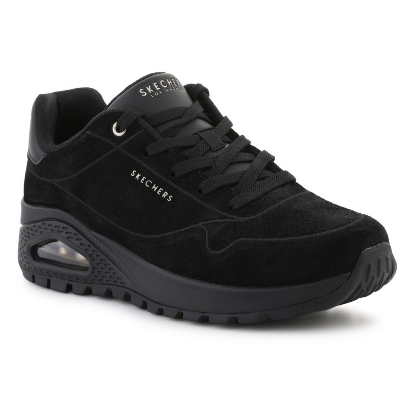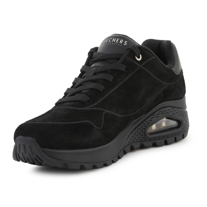 Model Skechers Uno Rugged-ChillProof 155135-BBK to buty zaprojektowane na chłodniejsze dni, oferujące połączenie trwałości i komfortu. Cholewka wykonana jest z welurowej skóry typu suede, co zapewnia elegancki, wytrzymały wygląd oraz naturalne ocieplenie. Buty są wiązane sznurowadłami, co pozwala na dobre dopasowanie do stopy.