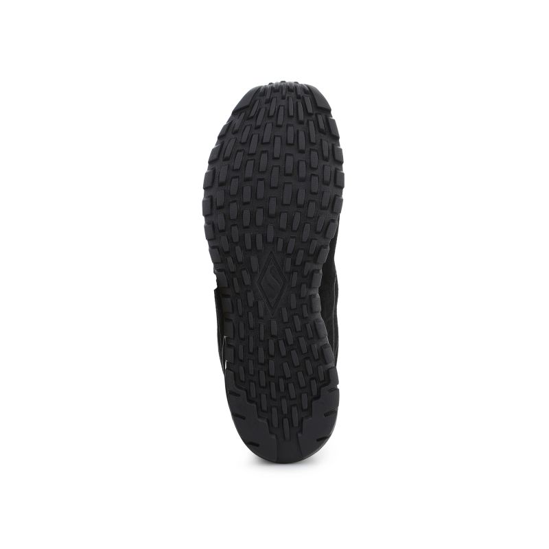 Elastyczna, gumowa podeszwa zewnętrzna zapewnia przyczepność, nawet na nierównym podłożu. Zamszowa cholewka oraz czarne wykończenie nadają butom stylowego, miejskiego charakteru, idealnego do codziennych stylizacji w chłodniejsze dni.