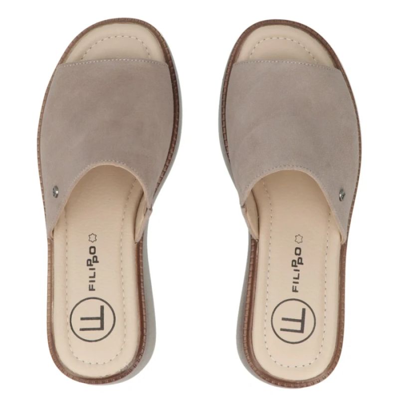 Skórzane klapki damskie taupe Filippo DK7798