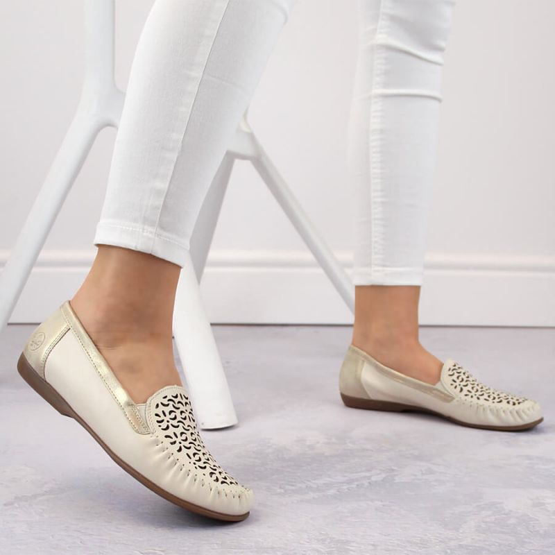 Skórzane komfortowe półbuty ażurowe Rieker W RKR658 beżowe
