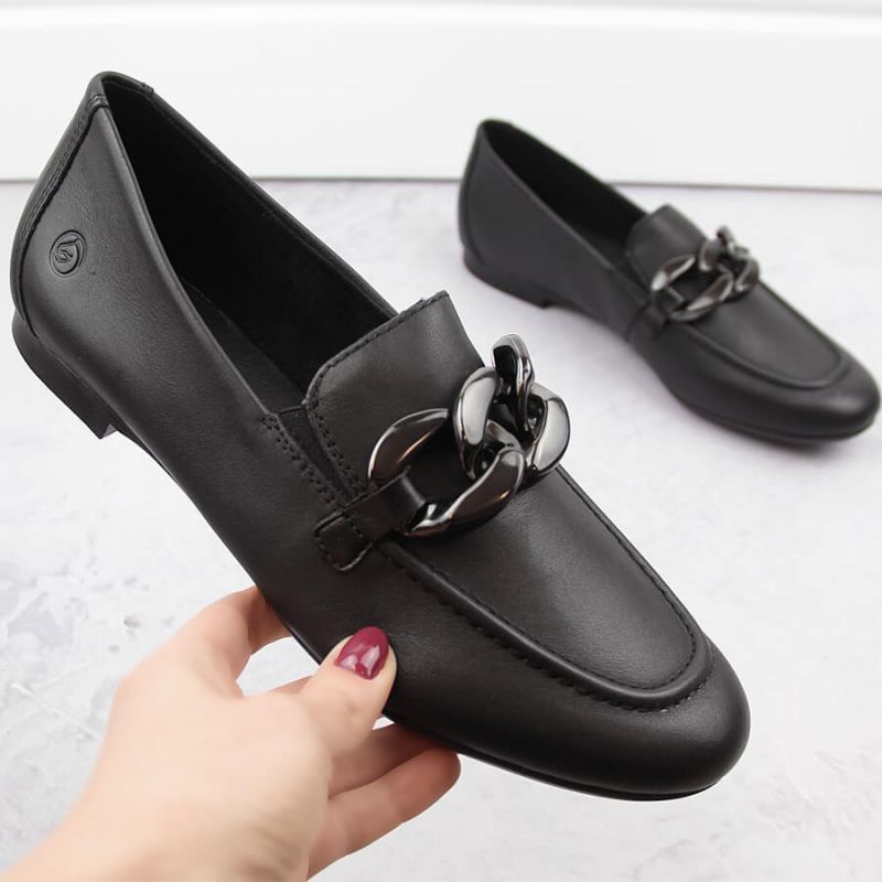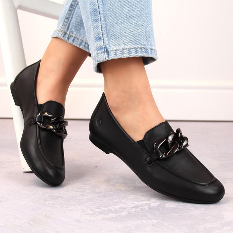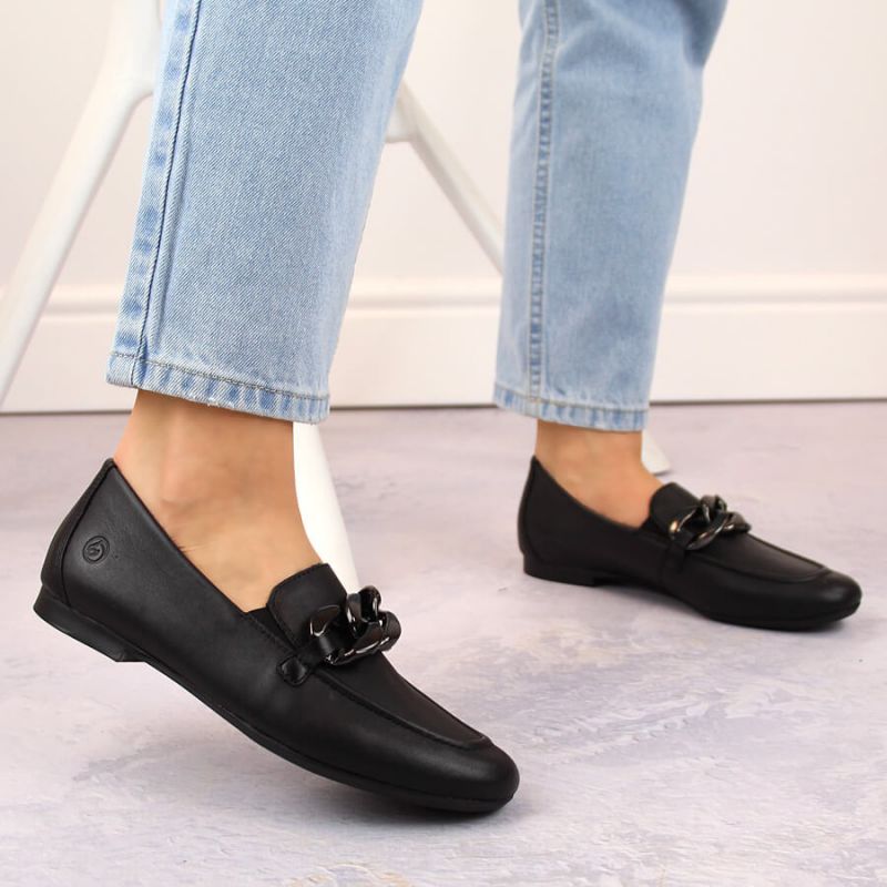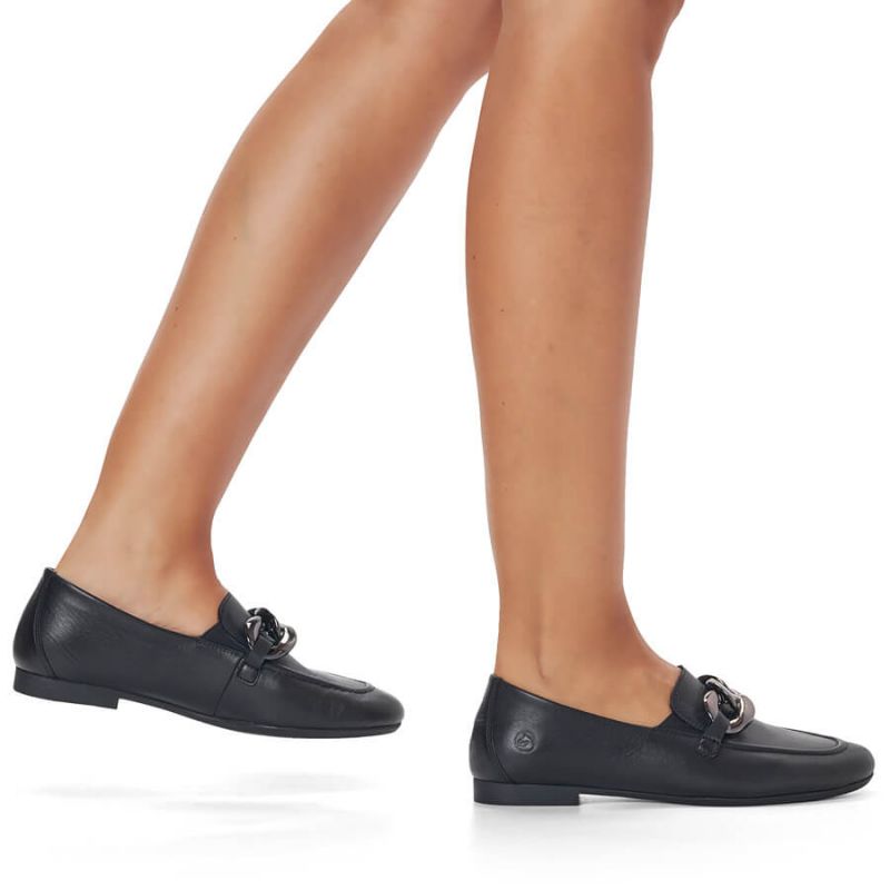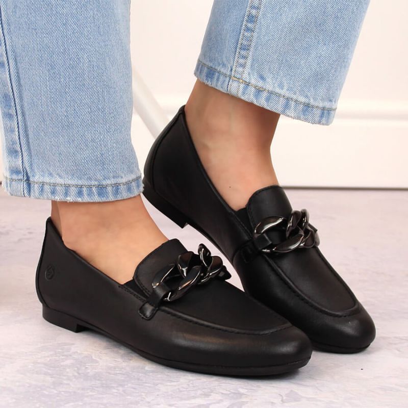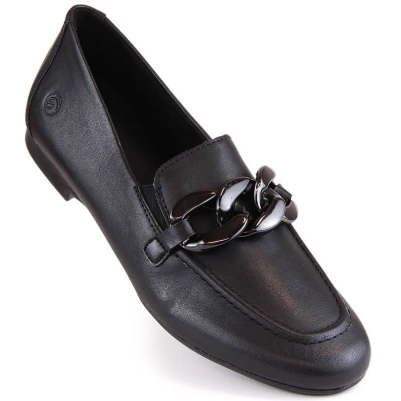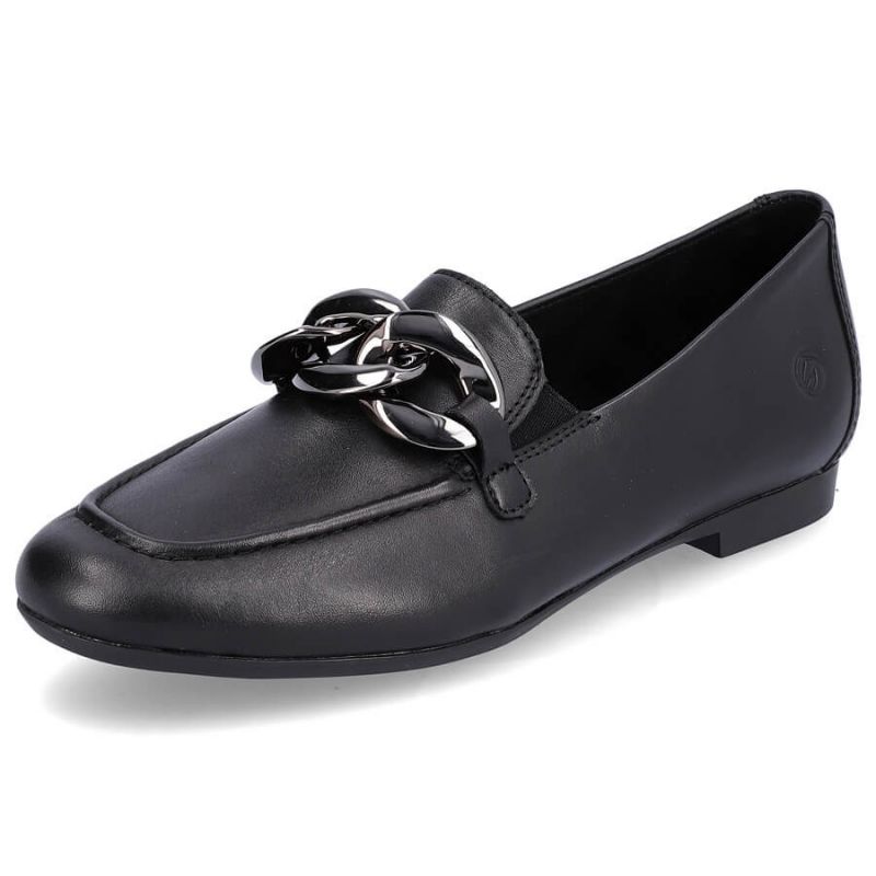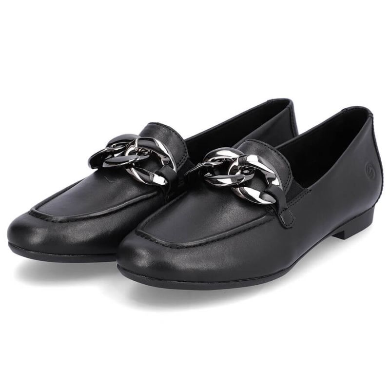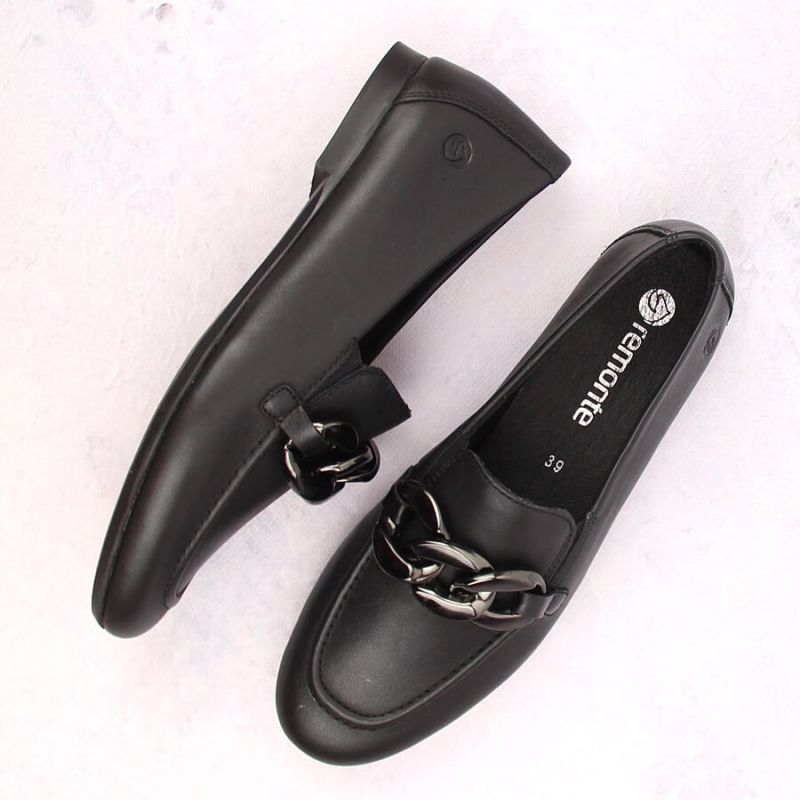 Skórzane komfortowe półbuty z łańcuszkiem Remonte W RKR645 czarne