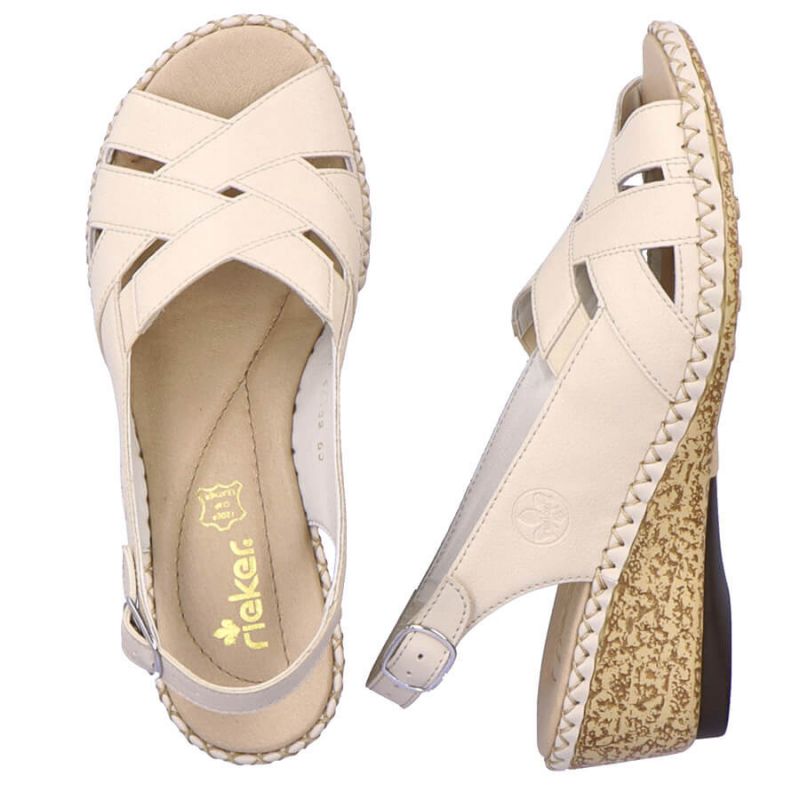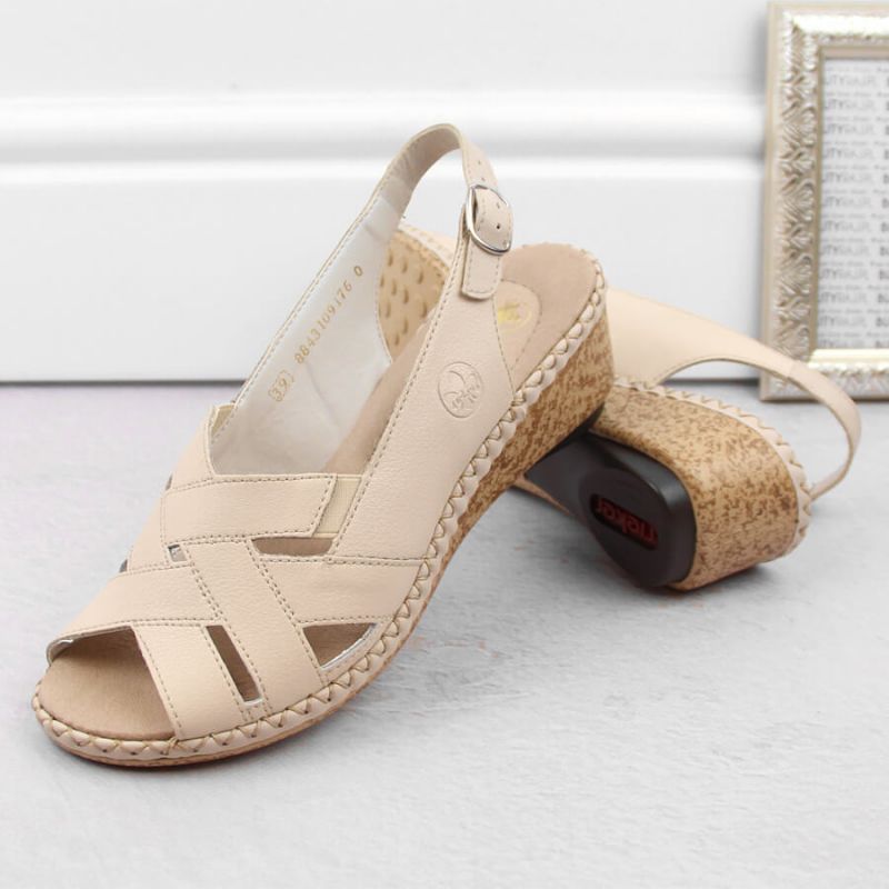 Skórzane komfortowe sandały Rieker W RKR682 beżowe