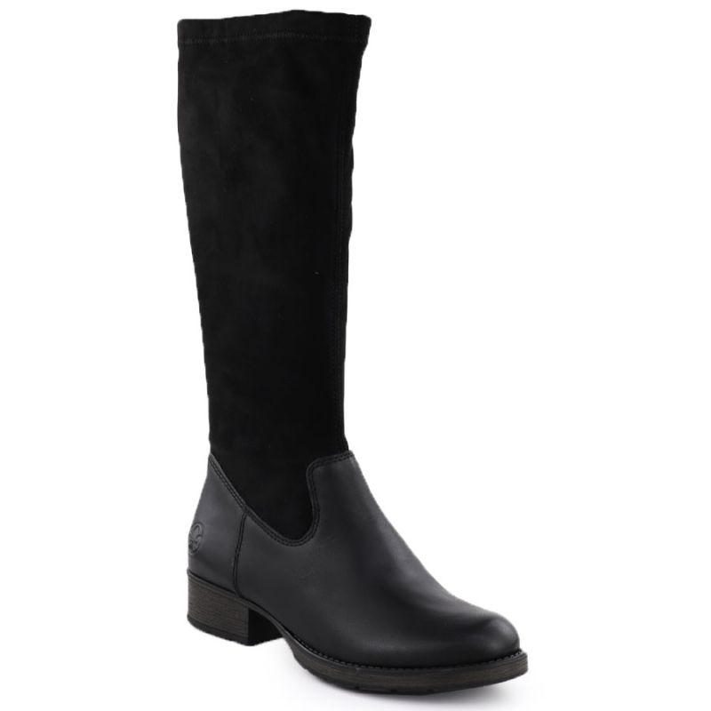Skórzane kozaki damskie na klocku ocieplane czarne Rieker 9551