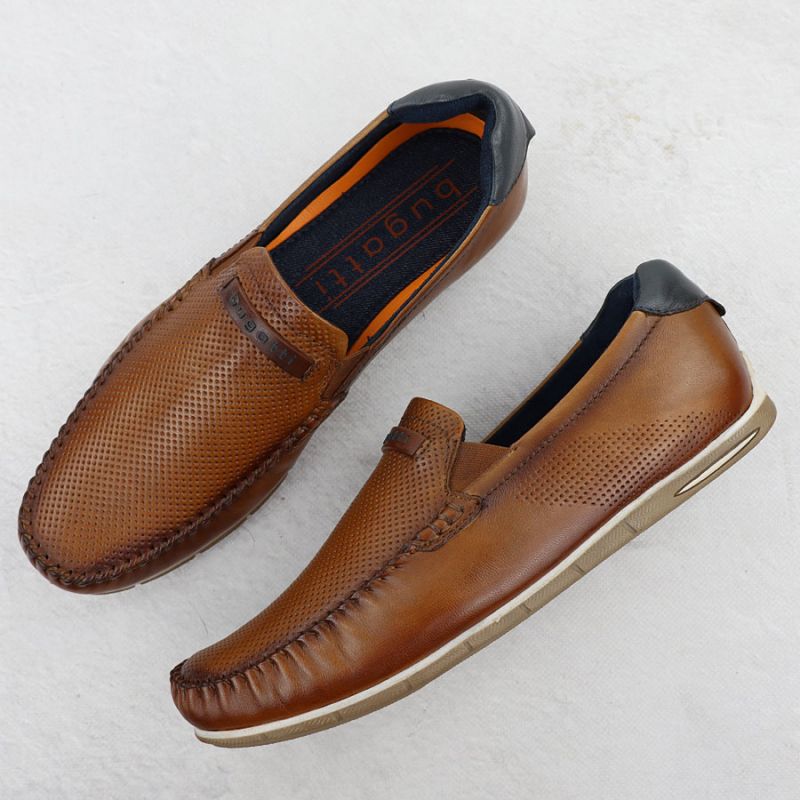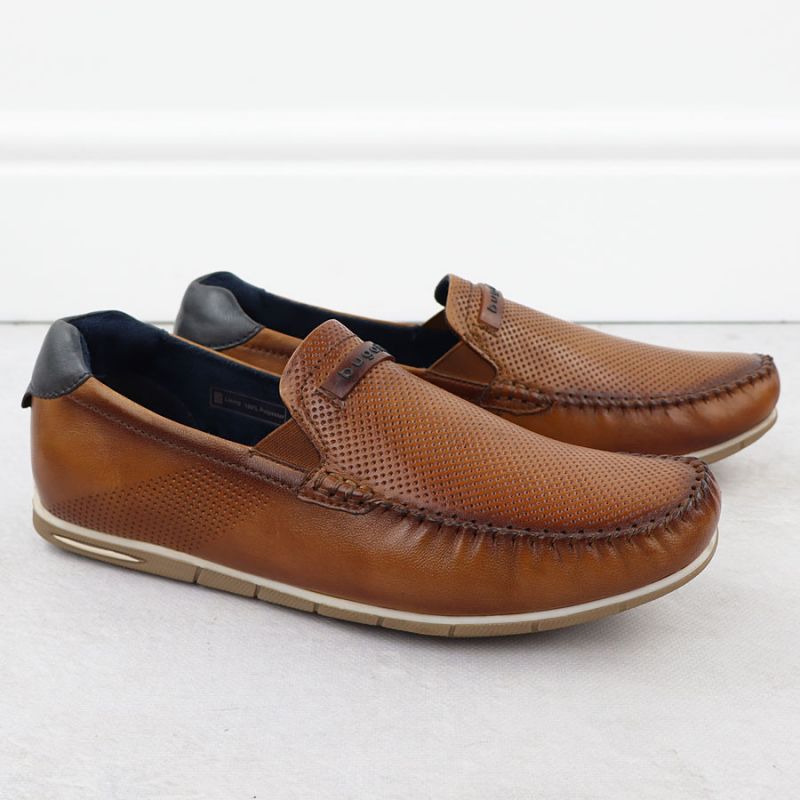 Skórzane mokasyny męskie komfortowe wsuwane brązowe Bugatti 321-A2X6G-4000
