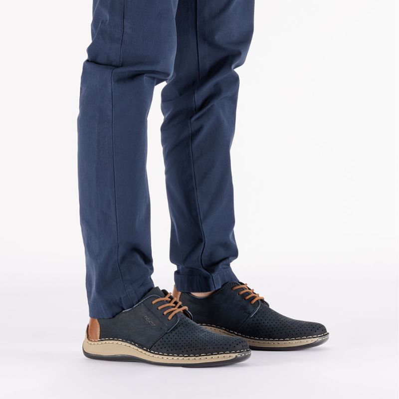 6. Skórzane półbuty ażurowe granatowe Rieker 05226-14