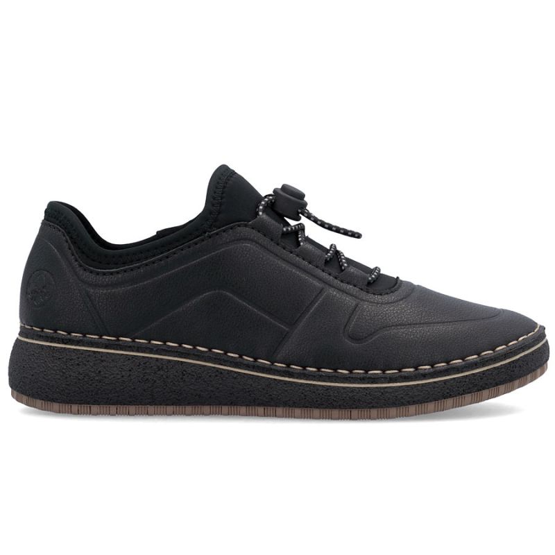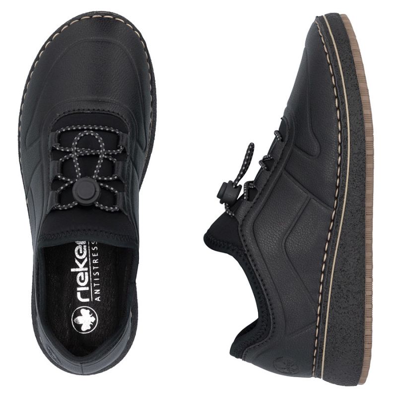 Skórzane półbuty damskie na podwyższeniu czarne Rieker 50960-00