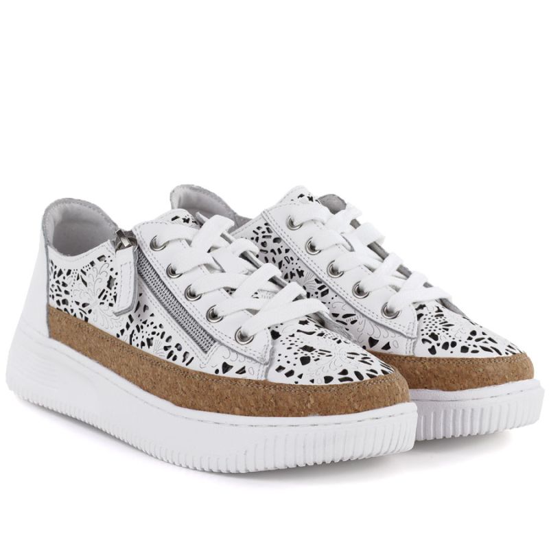 Skórzane półbuty damskie na zamek ażurowe białe Artiker 58C1250