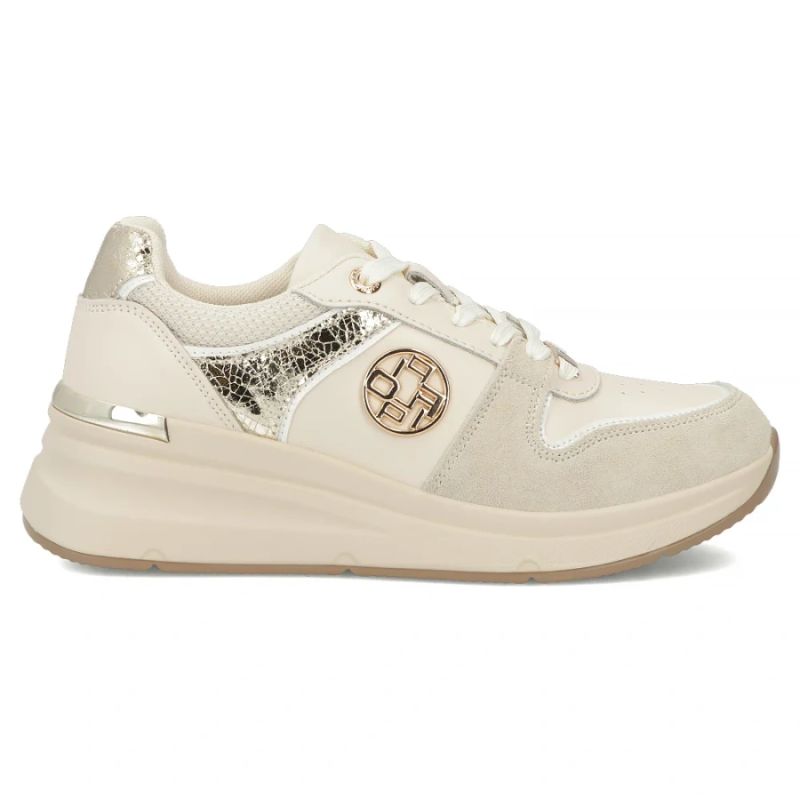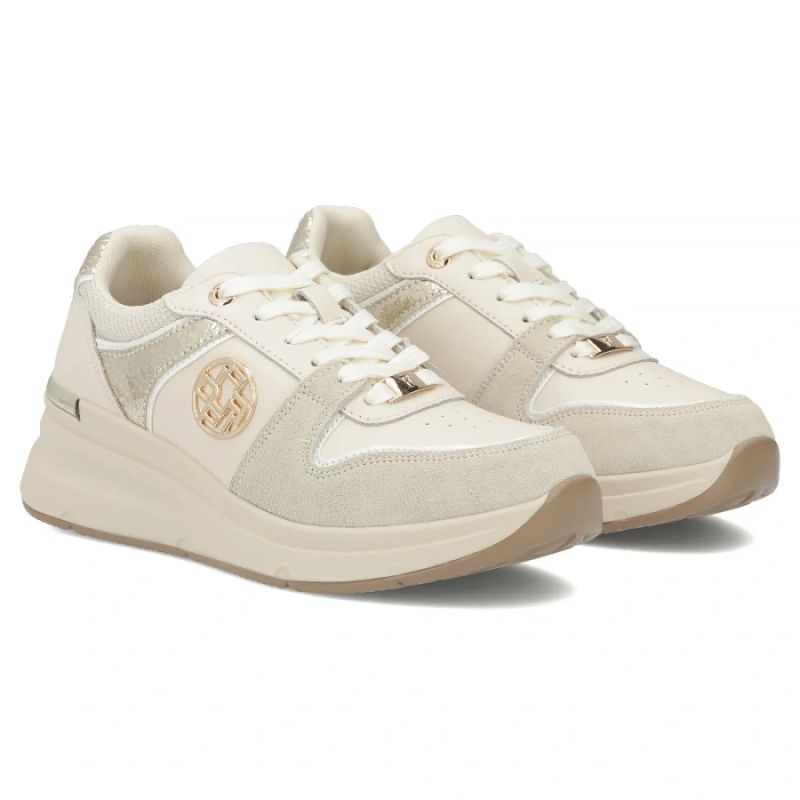 Skórzane półbuty damskie sneakersy beżowe Filippo DP7769
