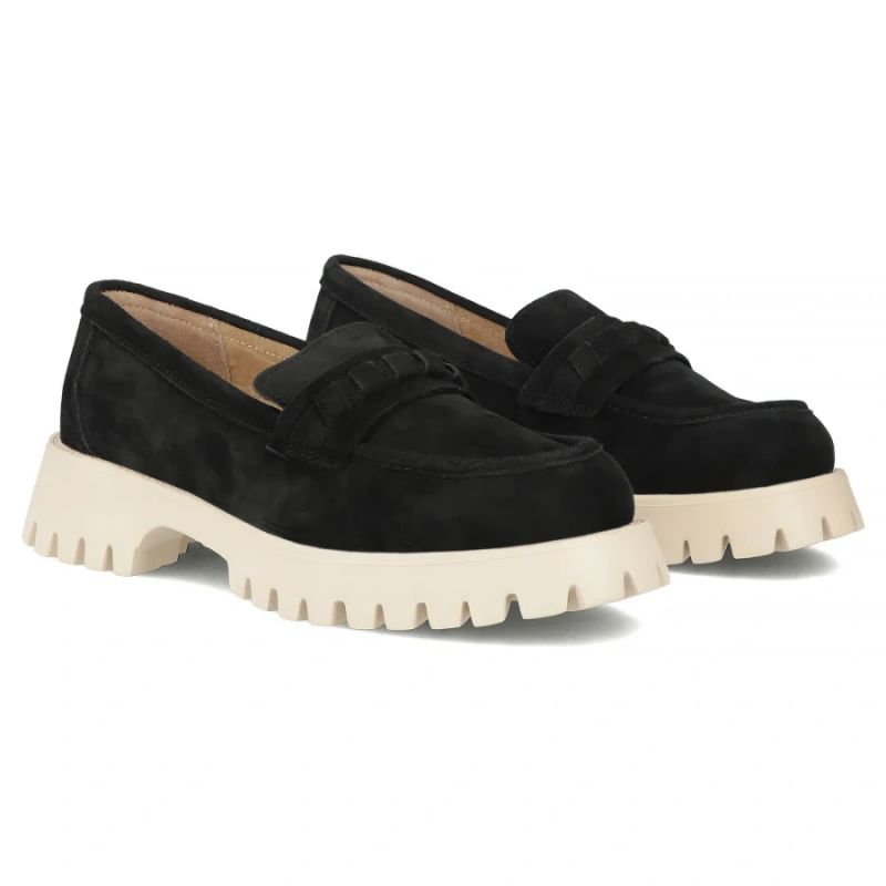 Skórzane półbuty damskie zamszowe lordsy czarne Filippo DP7554