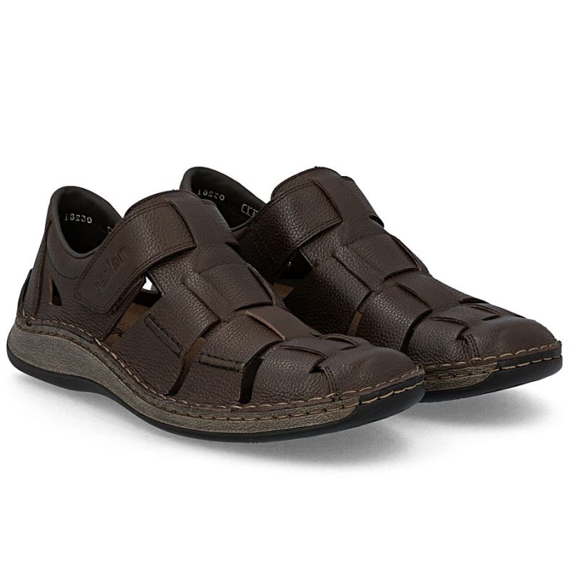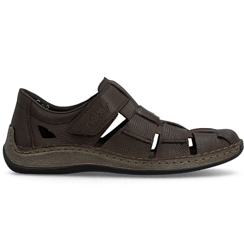 Skórzane półbuty męskie ażurowe brązowe Rieker 05281-25