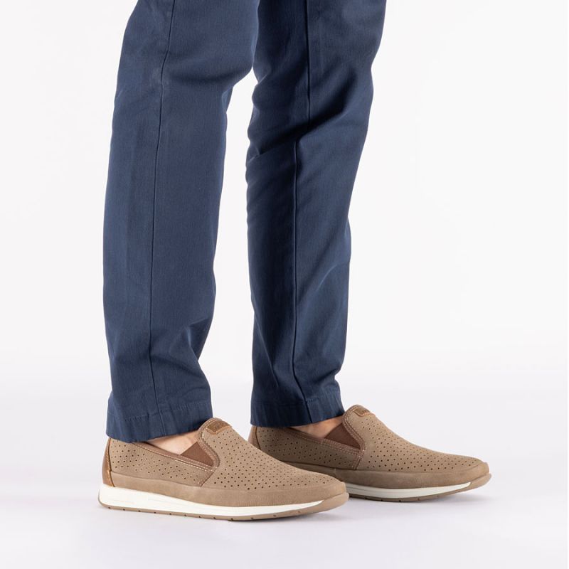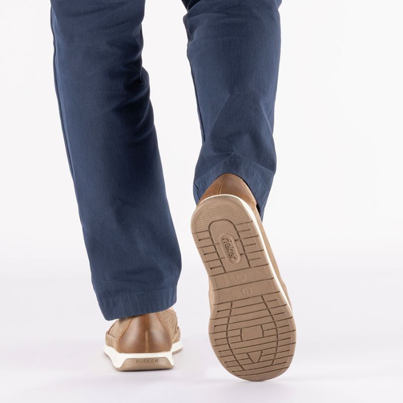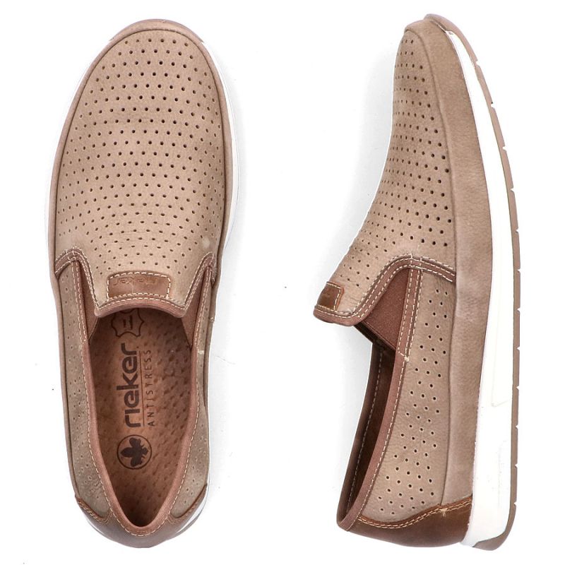 Skórzane półbuty męskie ażurowe mokasyny brązowe Rieker 11955-64