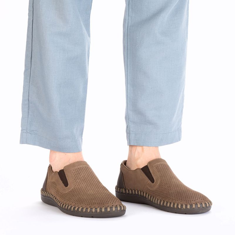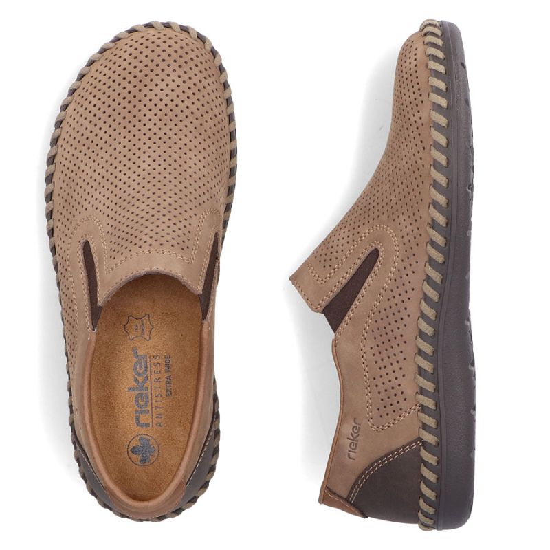Skórzane półbuty męskie ażurowe wsuwane beżowe Rieker B2460-25