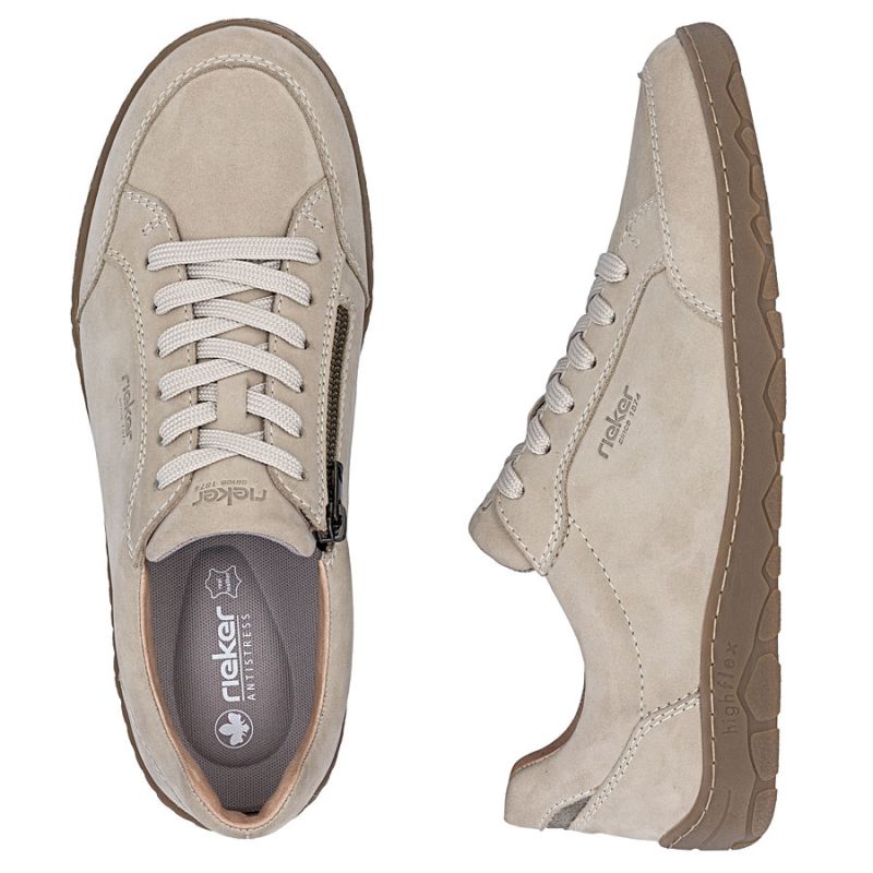 Skórzane półbuty męskie zamszowe beżowe Rieker 08300-62