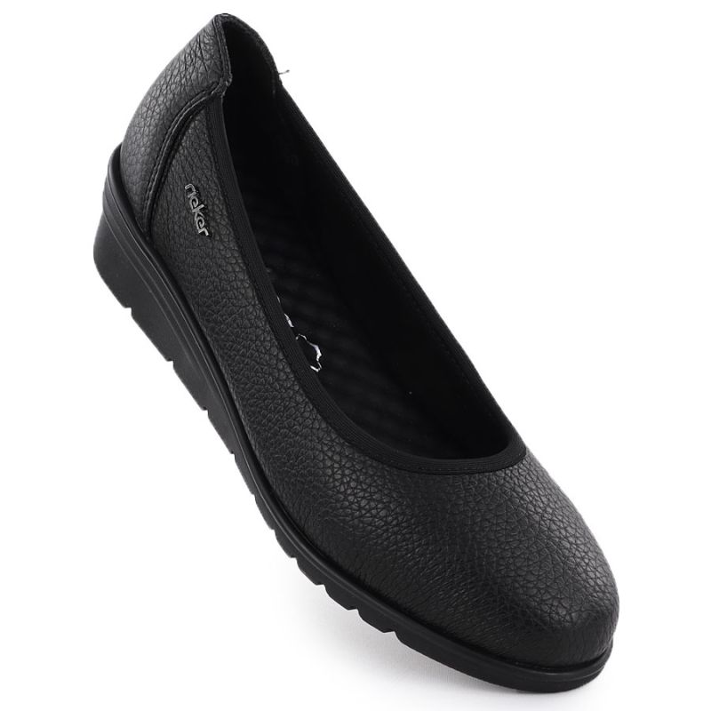 Skórzane półbuty wsuwane damskie czarne Rieker L5360-00