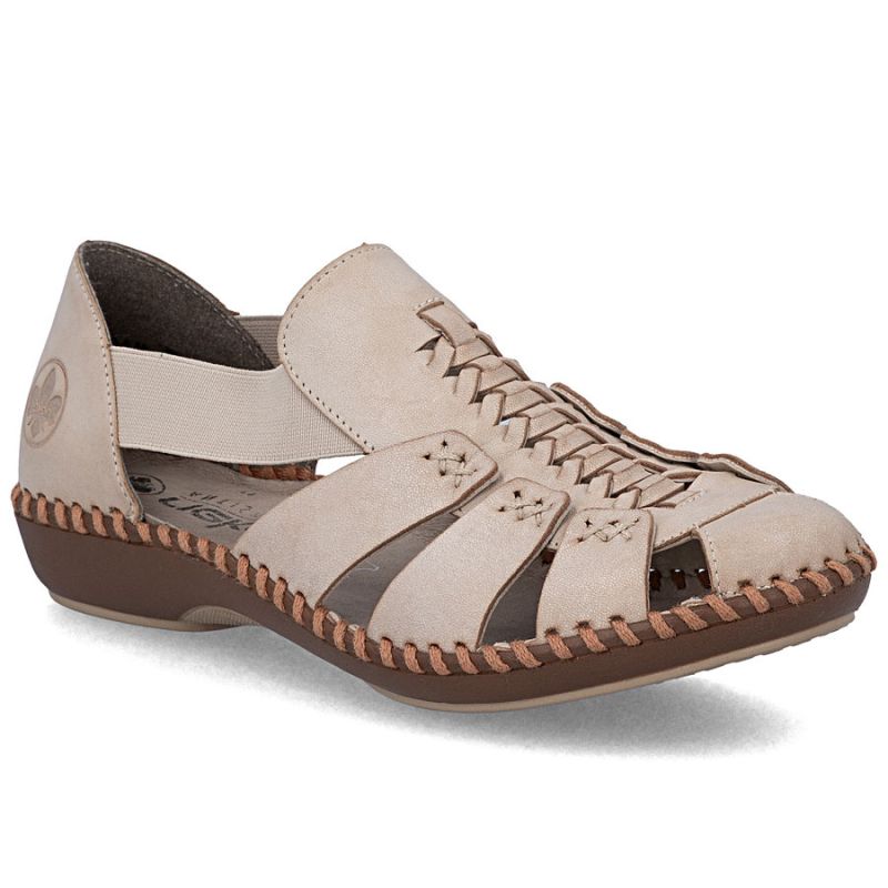 Skórzane sandały damskie beżowe Rieker M1679-60