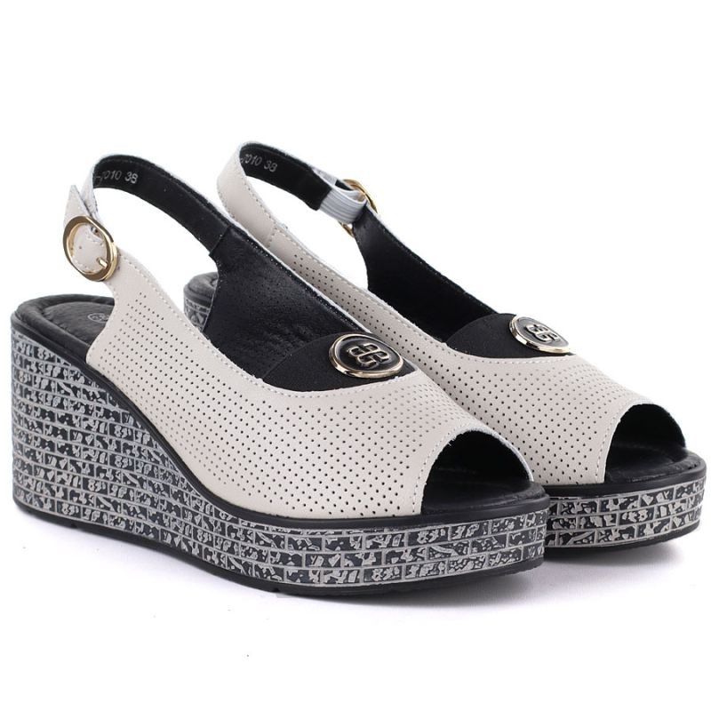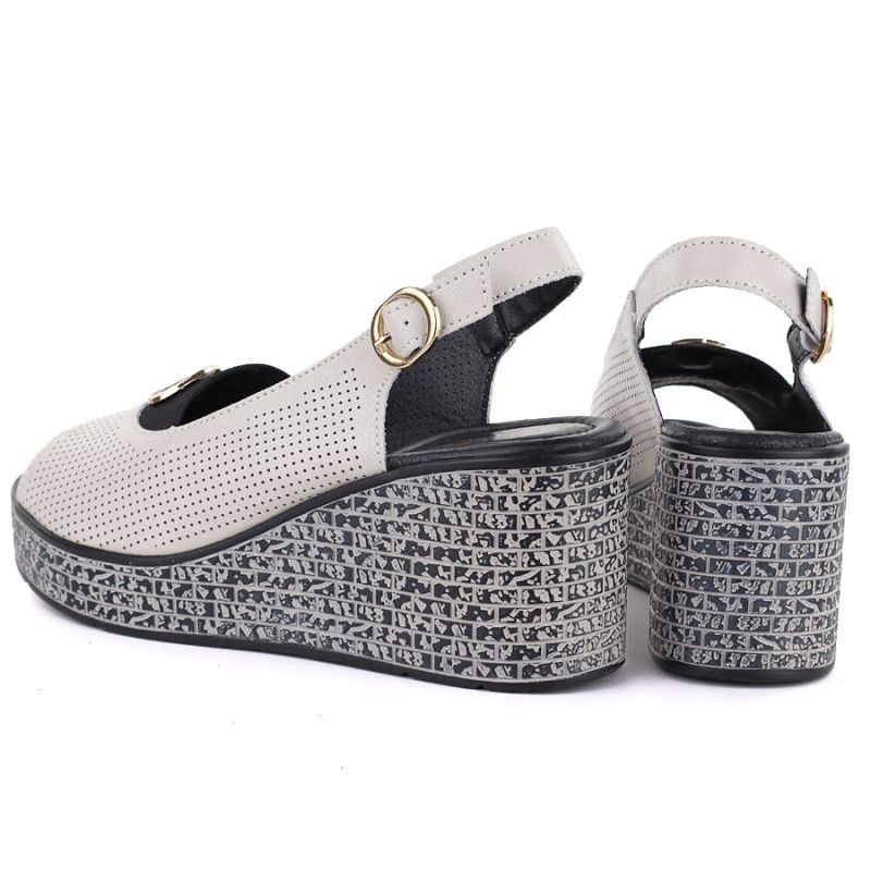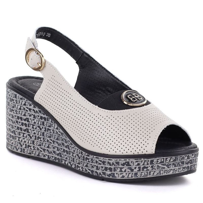 Skórzane sandały damskie na koturnie ażurowe beżowe S.Barski 7010