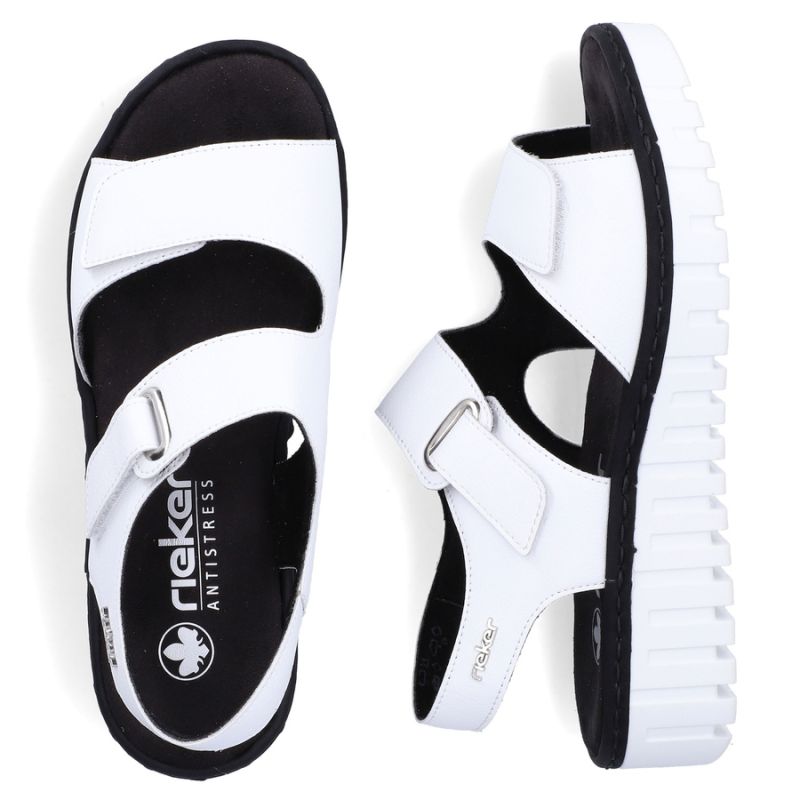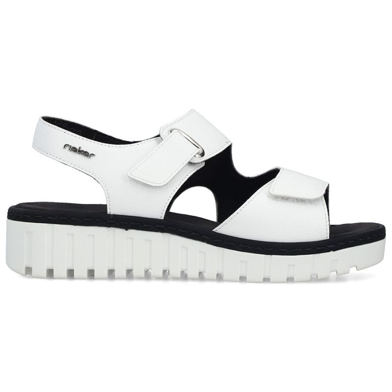 Skórzane sandały damskie na koturnie białe Rieker V1382-80