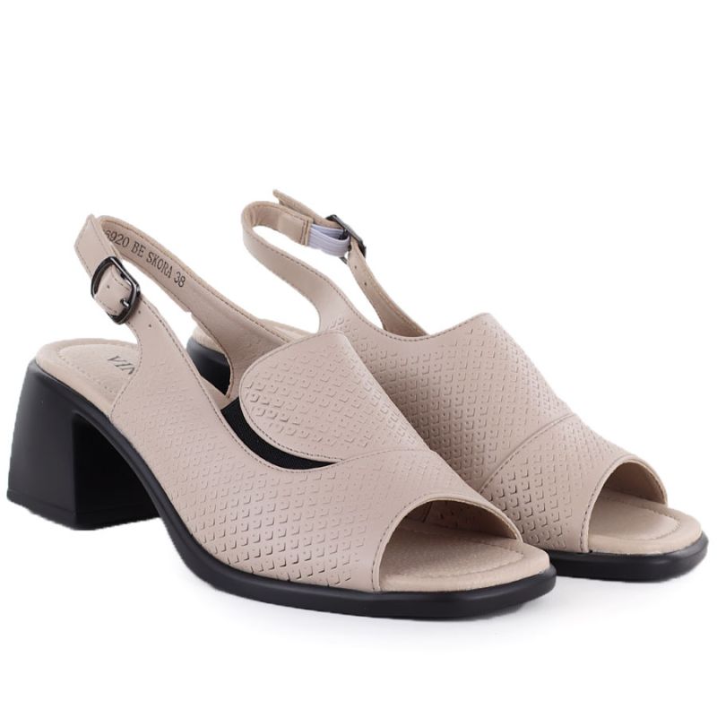 Skórzane sandały damskie na obcasie beżowe Vinceza 26-66920