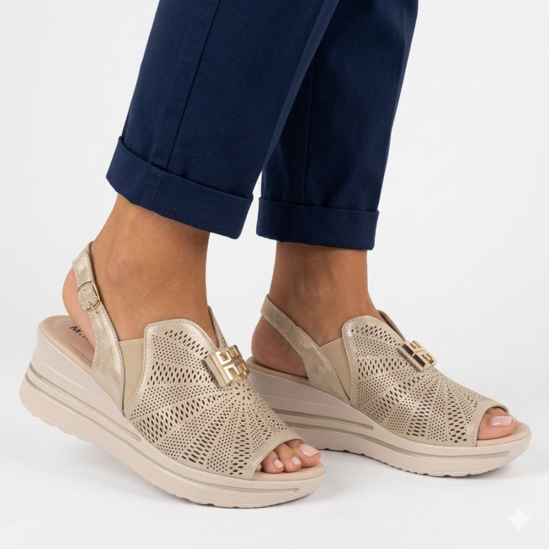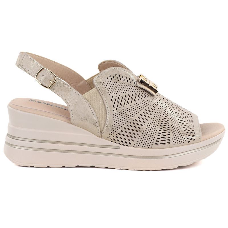 Skórzane sandały damskie na platformie koturn złoty M.Daszyński 25144-4