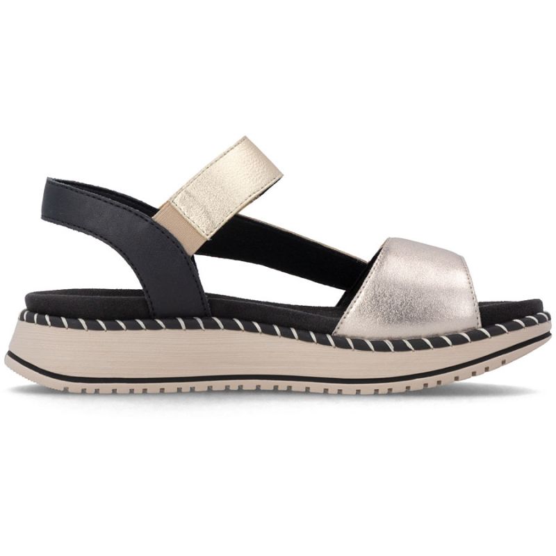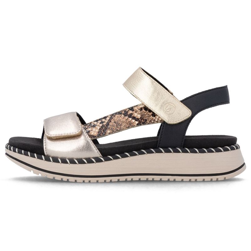 Skórzane sandały damskie na platformie metaliczne złote Remonte by Rieker D3J50-90