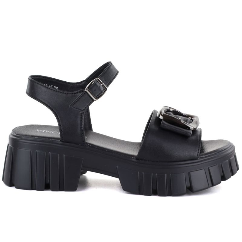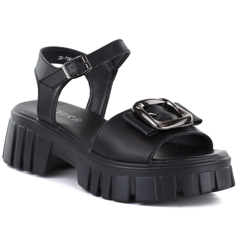 Skórzane sandały damskie na platformie z ozdobą czarne Vinceza 26-79611