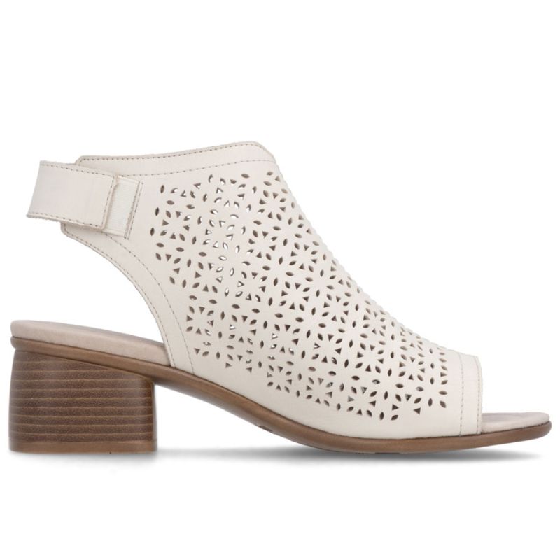 Skórzane sandały damskie zabudowane beżowe Remonte Rieker R8777-60