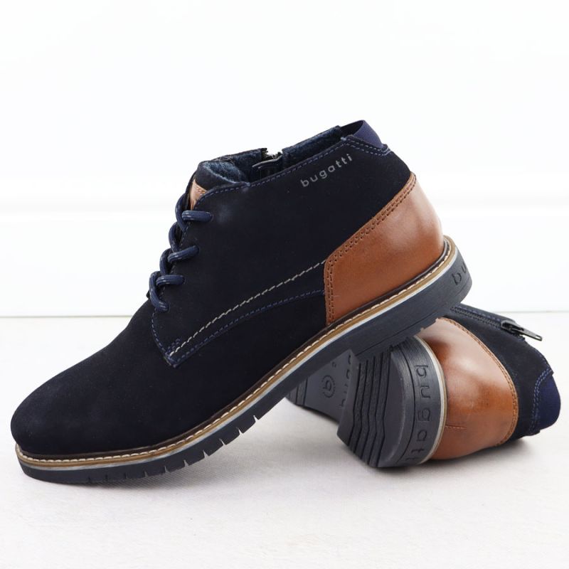 Skórzane trzewiki męskie zamszowe granatowe Bugatti 331-8373H-1400