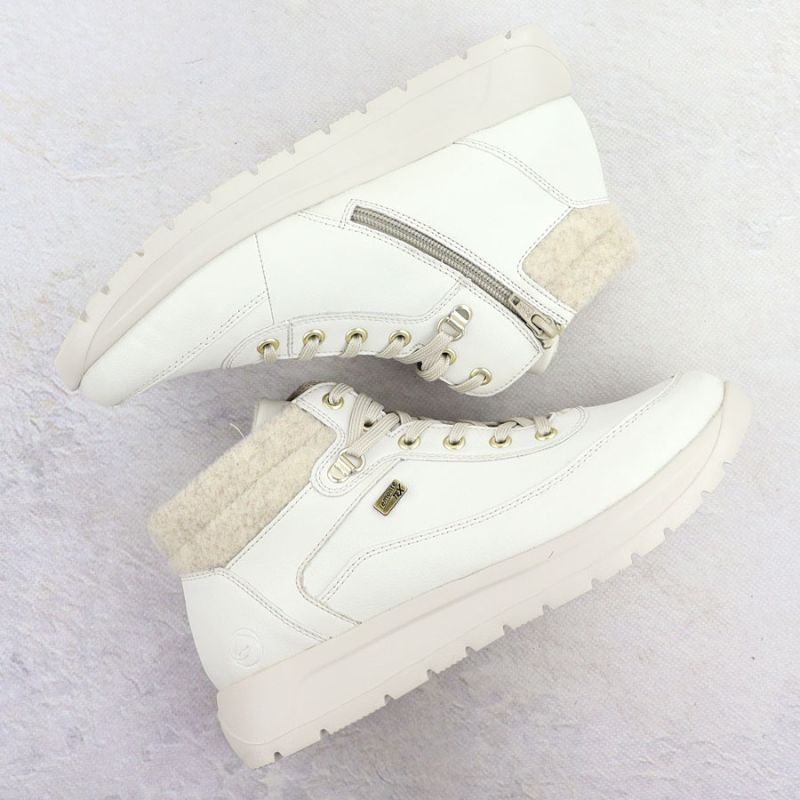 4. Skórzane wodoodporne traperki damskie kremowe Remonte Rieker D2V71-80