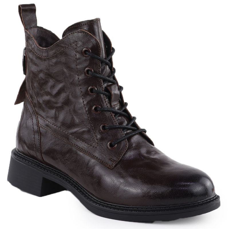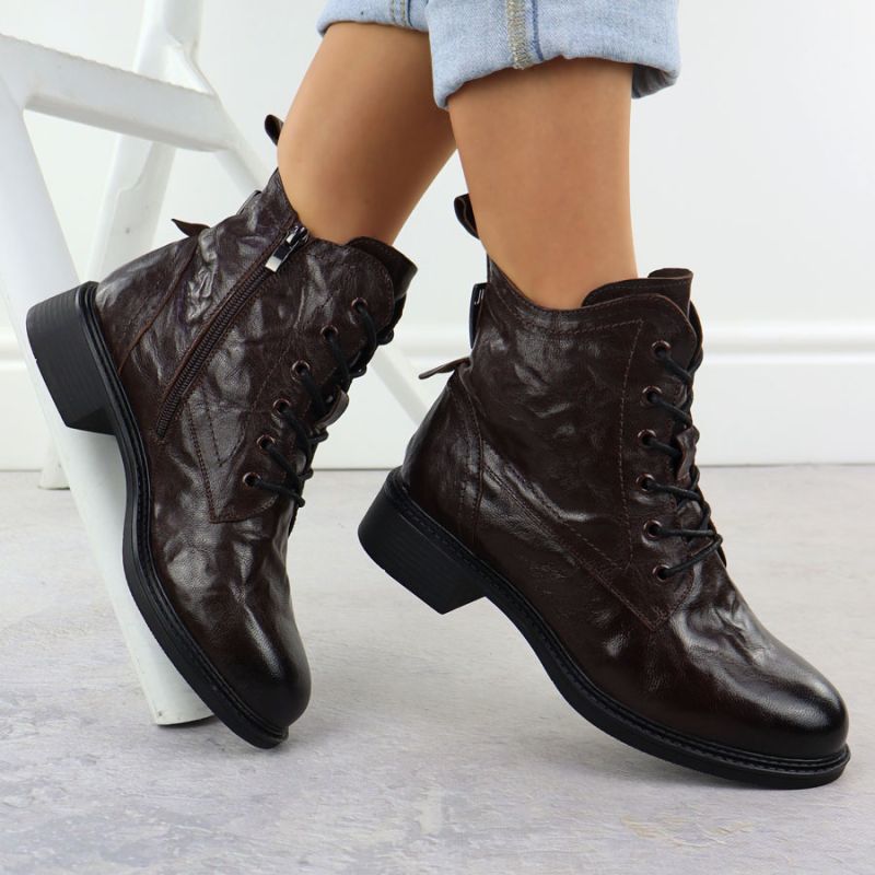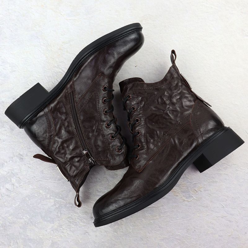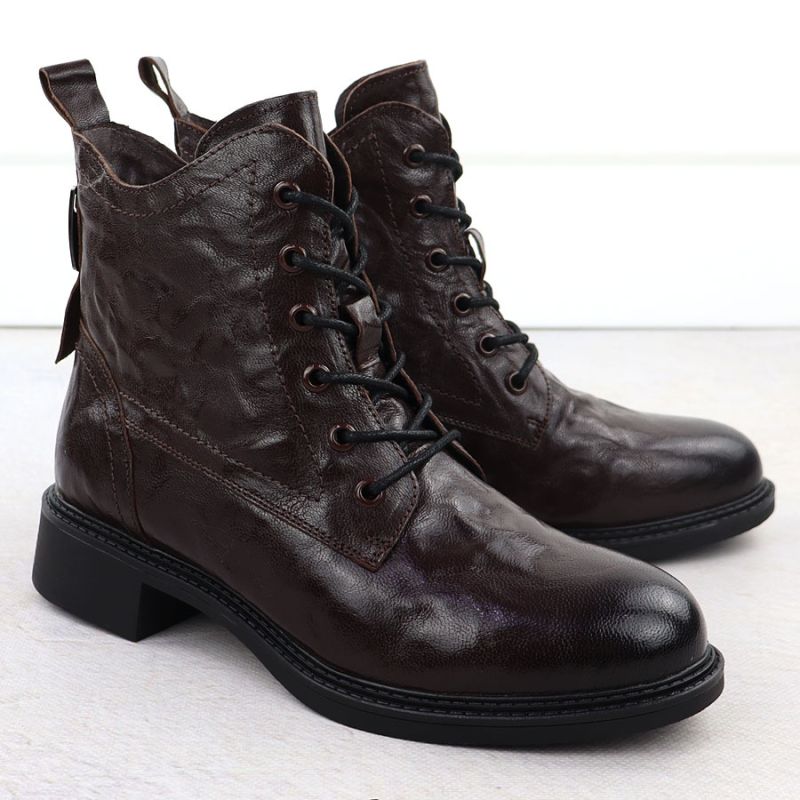 Skórzane workery damskie ocieplane botki brązowe Vinceza 86412