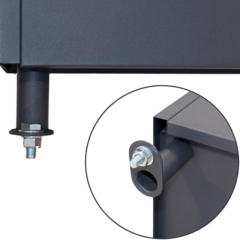 Skrzynka wykonana z wysokiej jakości metalu jest odporna na deszcz, śnieg i promieniowanie UV, co zapewnia długowieczność i estetyczny wygląd.