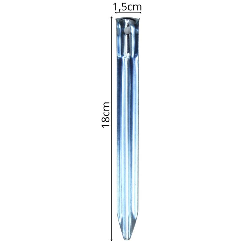 DOBREJ JAKOŚCI - wykonae ze stali ocynkowanej, kóra zapewnia odporność na korozję i wilgoć, co jest kluczowe podczas użytkowania w terenie. Dzięki temu śledzie zachowują trwałość nawet przy częstym kontakcie z ziemią i deszczem. To rozwiązanie idealne na wielosezonowe użytkowanie.