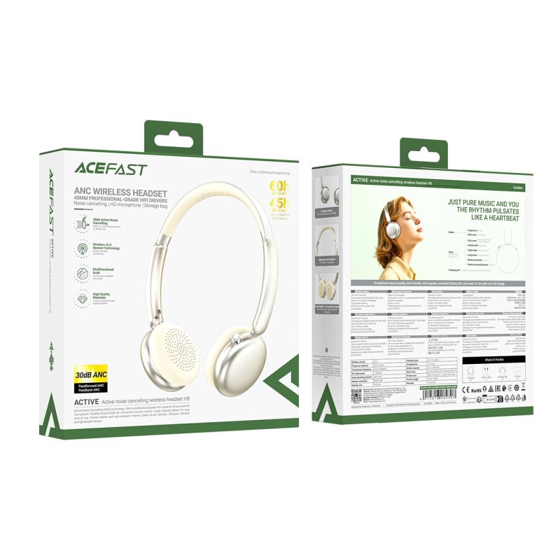 Słuchawki Acefast H8 w eleganckim złotym kolorze łączą nowoczesny design z doskonałą jakością dźwięku i skuteczną redukcją hałasu. Dzięki aktywnej redukcji szumów ANC możesz cieszyć się muzyką w pełnym skupieniu, a 40-milimetrowe przetworniki zapewniają głęboki, czysty dźwięk klasy HiFi. Wygodne pokrętło sterujące, stalowy pałąk i miękkie nauszniki z pianki memory gwarantują pełen komfort, nawet przy wielogodzinnym użytkowaniu. To słuchawki stworzone z myślą o jakości, wygodzie i stylu.