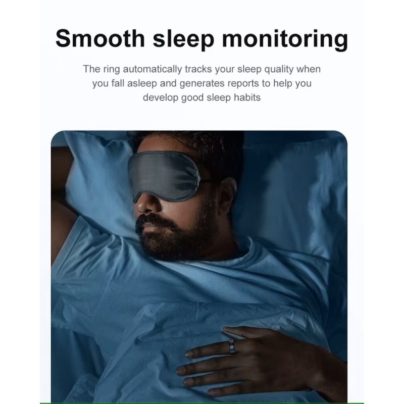 Widoczne pod przezroczystą warstwą czujniki i mikroelektronika wskazują na obecność zaawansowanych funkcji i wysoką precyzję pomiarów. Wbudowane czujniki optyczne i ruchu monitorują parametry mikrozmiany na skórze i ruchy ciała w czasie rzeczywistym. Dzięki nim Smart Ring dostarcza precyzyjnych danych o Twoim zdrowiu i stylu życia – dyskretnie i bez przerwy.