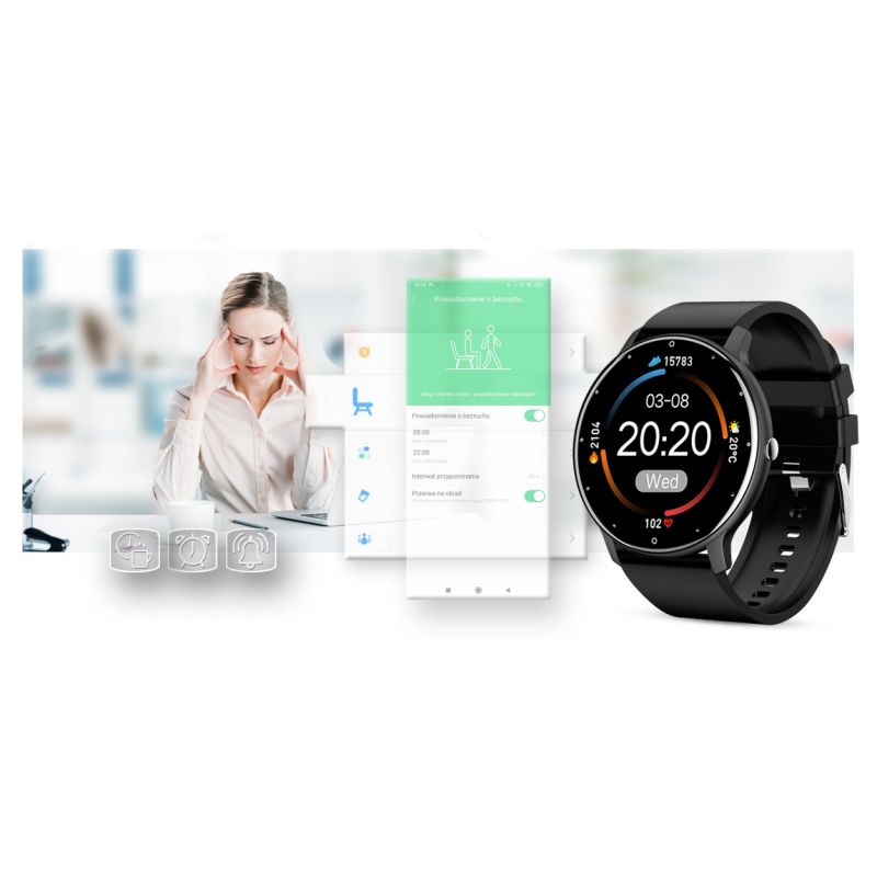 Uzyskaj harmonię pomiędzy aktywnością a wypoczynkiem! Pomoże Ci w tym takie narzędzie, jak monitor braku aktywności. Jeżeli się zasiedzisz - smartwatch GRAVITY przypomni Ci o dłuższym czasie bez aktywności. Koniec wymówek, Twój nowy smartwatch Gravity wie, że ruch to zdrowie!