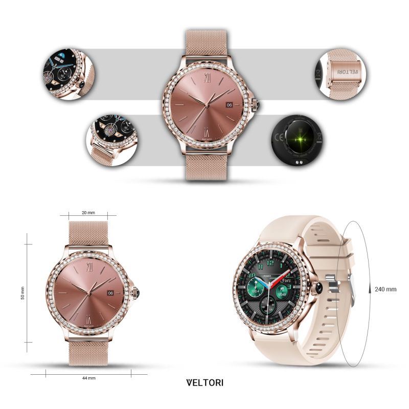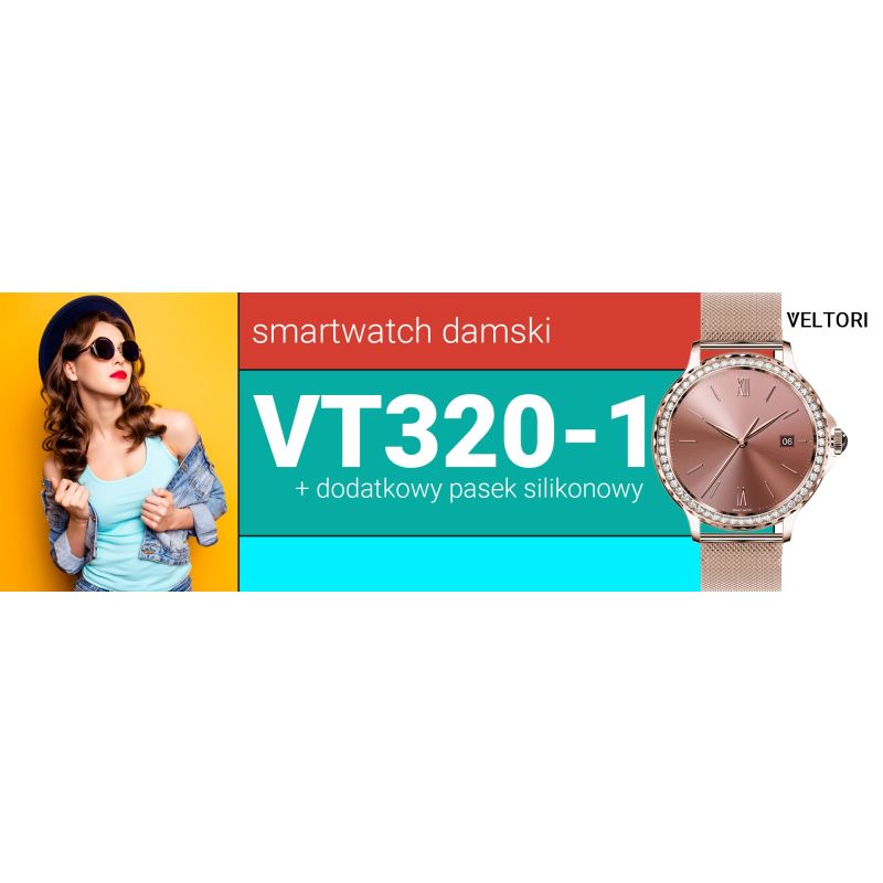 Smartwatch Damski VELTORI VT320-1 Złota Bransoleta + Różowy Pasek Silikonowy