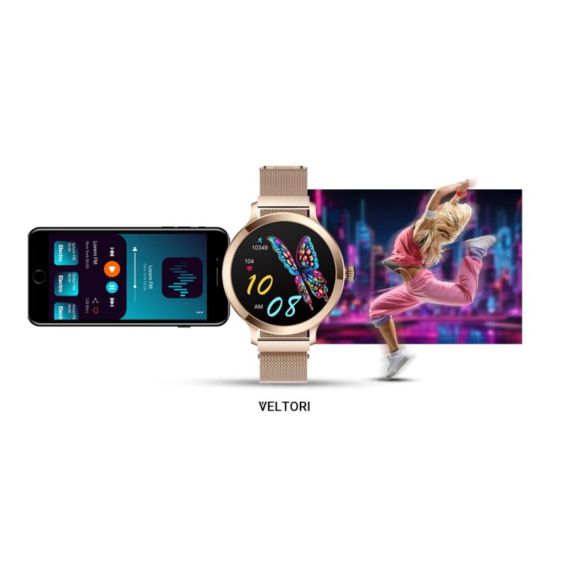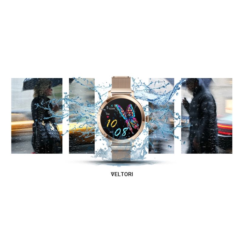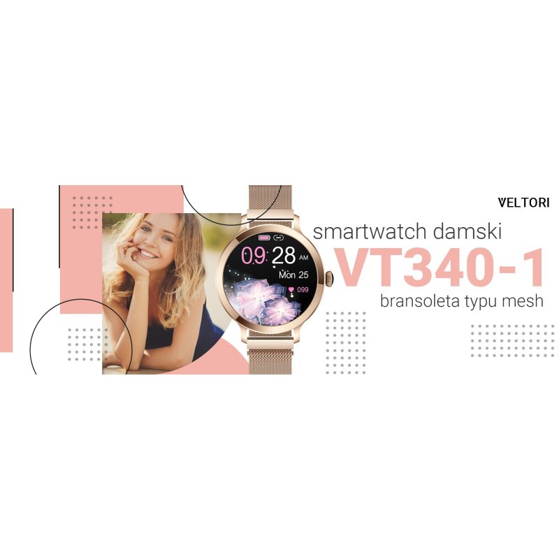 Smartwatch Damski VELTORI VT340-1 Złota Bransoleta + Różowy Pasek Silikonowy