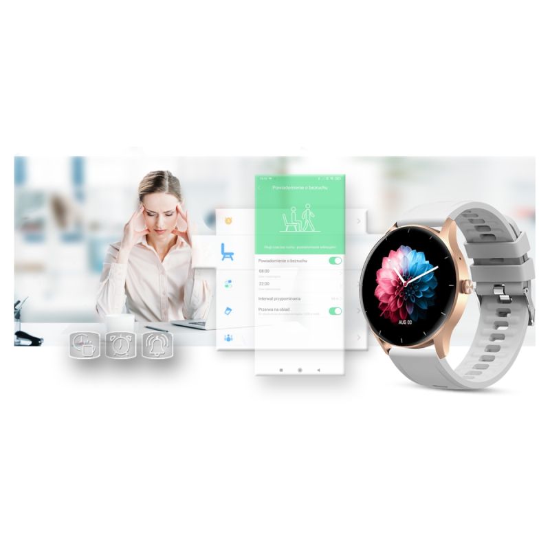Smartwatch damski Gravity GT2 posiada funkcję przypomnienia o nadchodzącej miesiączce. Twój smartwatch jest twoim intymnym strażnikiem twojego organizmu. Od tej chwili żyj spokojnie i miej wszystko pod stałą kontrolą.