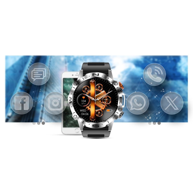 Z tym smartwatchem nie przegapisz tego, co ważne. Od teraz wiadomości SMS oraz z Facebook, Twitter, Whatsapp, Skype itp. wyświetlane są na tarczy w czasie rzeczywistym. Nie musisz odrywać się od pracy czy aktywności - wystarczy podnieść rękę, aby wyświetlić wiadomości!