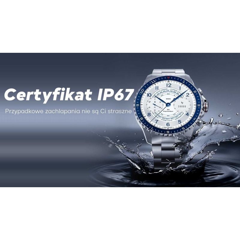 Dla tych, którzy nie mają czasu na zbędne kompromisy – ten smartwatch to połączenie męskiego stylu, nowoczesnych technologii i niezawodnej wydajności. W pełni dotykowy ekran AMOLED HD 1,43” o rozdzielczości 466x466 px zapewnia perfekcyjną ostrość i doskonałą widoczność nawet w pełnym słońcu – niezależnie, czy jesteś w biegu między spotkaniami, na treningu czy na szczycie górskiej wyprawy.Bluetooth 5.2 i wbudowany mikrofon oraz głośnik sprawiają, że telefon może zostać w kieszeni – odbieraj i wykonuj połączenia bezpośrednio z nadgarstka, zachowując pełną mobilność. Solidna stalowa bransoleta i koperta z wytrzymałego stopu metali nadają mu elegancki, ale jednocześnie sportowy charakter.Dzięki wodoszczelności IP68 niestraszne mu deszcz, pot czy intensywny wysiłek, a wydajna bateria 250 mAh zapewnia do 5 dni pracy i 10 dni w trybie czuwania. Smartwatch idealnie współpracuje z aplikacją DaFit, synchronizując się ze smartfonami Android i iOS, dając Ci pełną kontrolę nad powiadomieniami, aktywnością i zdrowiem.