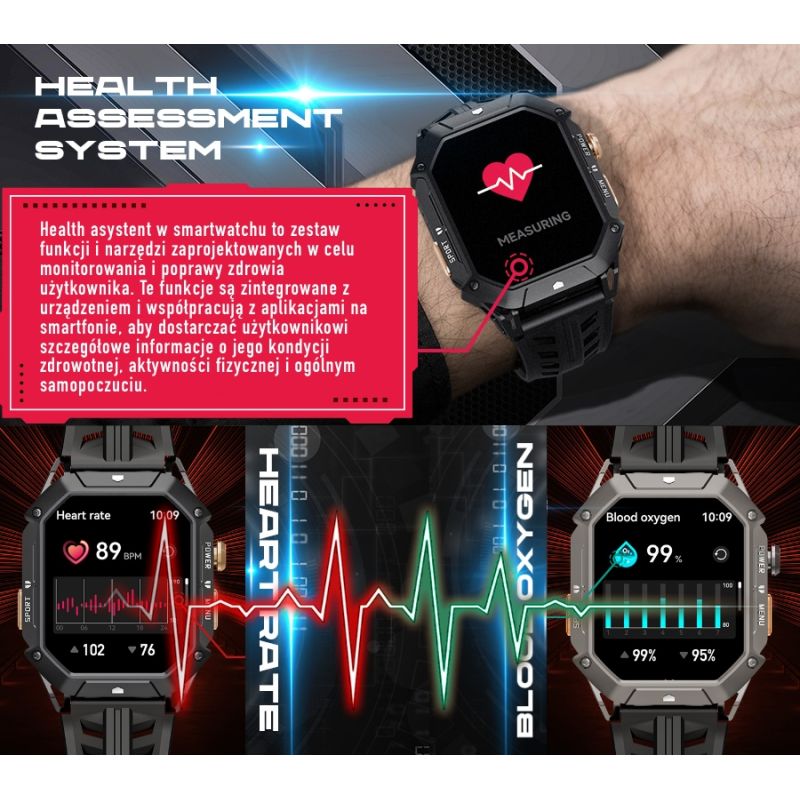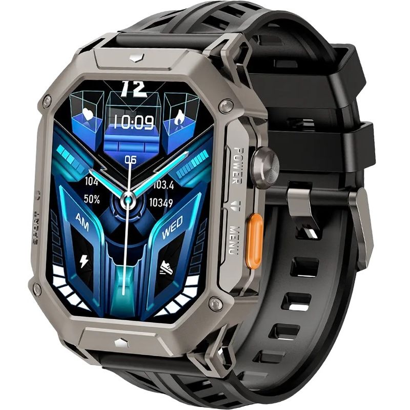 Stonowany szary kolor koperty z metalicznymi pomarańczowymi przyciskami pobudzi Cię do działania! Solidna konstrukcja, wytrzymały pasek i dotykowy ekran dają poczucie kontroli – wystarczy jedno muśnięcie, by sięgnąć po pełną funkcjonalność.