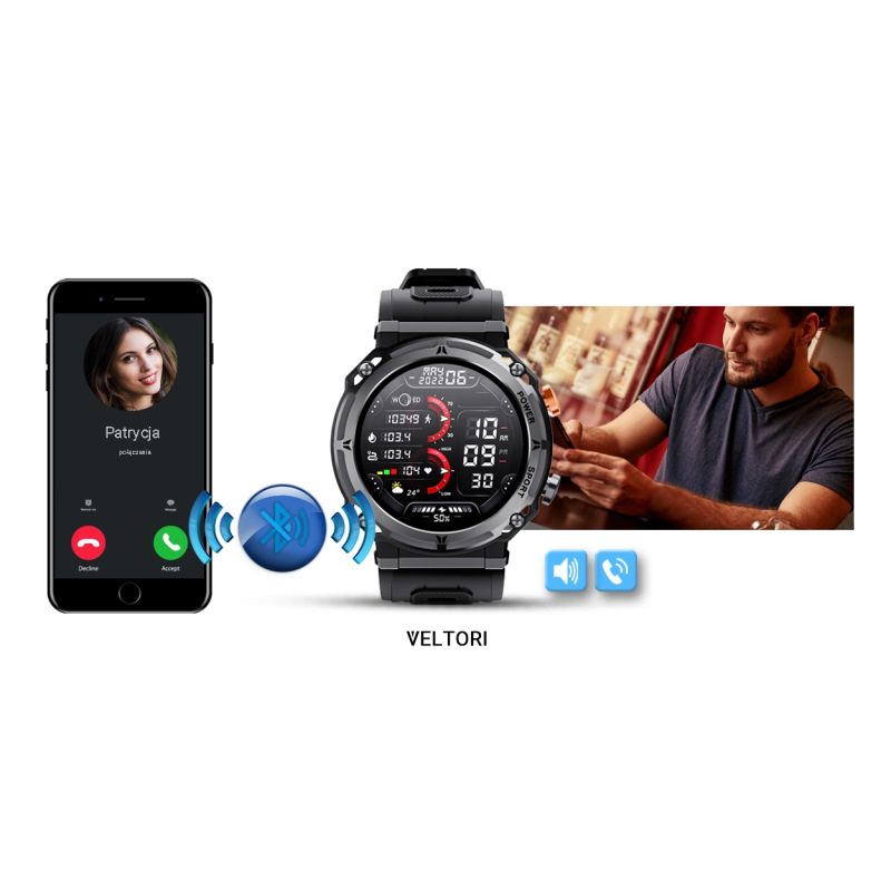 Smartwatch VELTORI VT130-1 Czarny Pasek Silikonowy