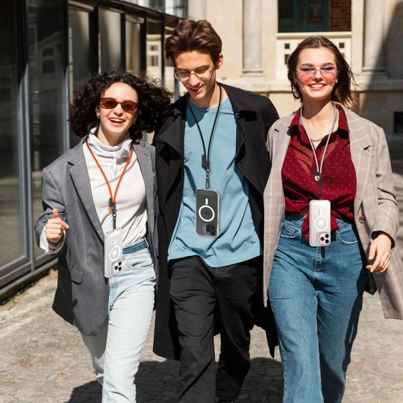 Wyposażony w adapter, który umieszczamy po wewnętrznej stronie etui, umożliwia bezpieczne i wygodne noszenie telefonu. Dzięki regulowanej długości sznurka, możemy przewiesić telefon przez ramię lub nosić go w dłoni, dostosowując sposób użytkowania do naszych potrzeb.