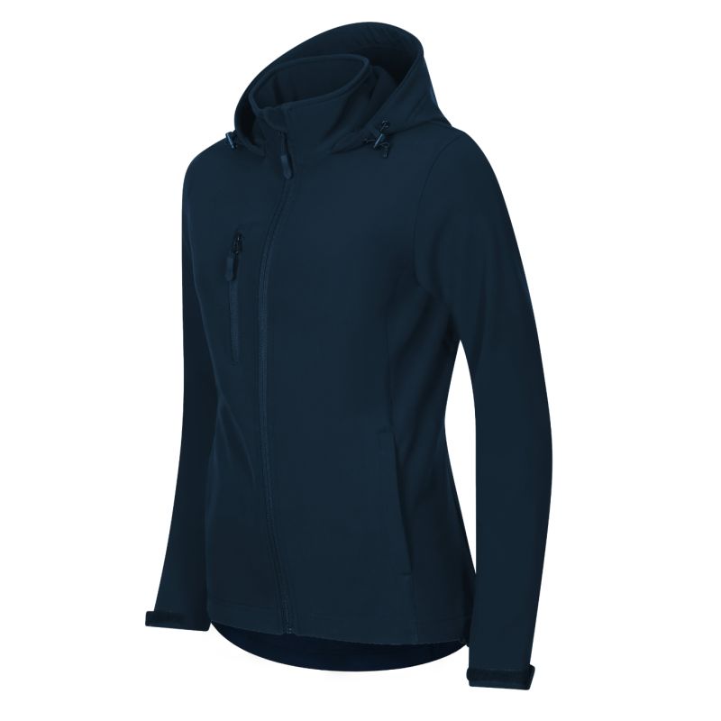 Softshell: 96 % poliester, 4 % elastan, 100D, 4-Way Stretch, wodoodporne wykończenie strona wewnętrzna: 100 % poliester - mikropolar, wykończenie antypillingowe bez etykiety - gotowy do rebrandingu, 2-warstwowy sofshell, krój lekko taliowany, zamek błyskawiczny z odwróconym suwakiem na całej długości z ochroną podbródka, elastyczny kaptur ze sznurkiem i ściągaczem na dole, etykieta na lamówce z tyłu w neutralnym rozmiarze, regulowane obszycia rękawów za pomocą rzepu, kieszenie z odwróconym spiralnym zamkiem błyskawicznym, kieszeń na piersi, lekko przedłużona w tylnej części, wewnętrzny polar z wykończeniem antypillingowym,