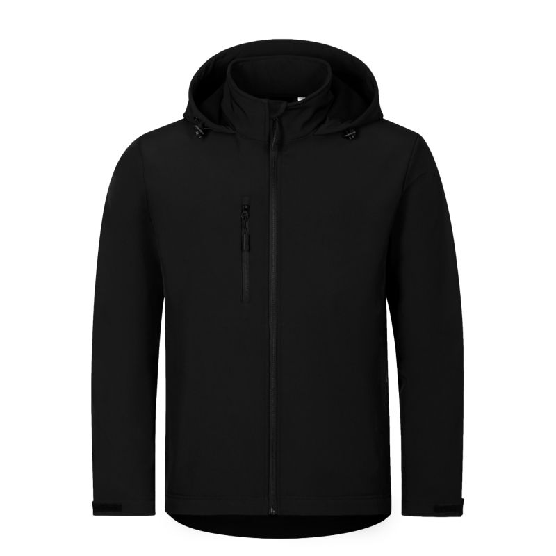 Softshell: 96 % poliester, 4 % elastan, 100D, 4-Way Stretch, wodoodporne wykończenie strona wewnętrzna: 100 % poliester - mikropolar, wykończenie antypillingowe bez etykiety - gotowy do rebrandingu, 2-warstwowy sofshell, prosty krój z bocznymi częściami, zamek błyskawiczny z odwróconym suwakiem na całej długości z ochroną podbródka, elastyczny kaptur ze sznurkiem i ściągaczem na dole, etykieta na lamówce z tyłu w neutralnym rozmiarze, regulowane obszycia rękawów za pomocą rzepu, kieszenie z odwróconym spiralnym zamkiem błyskawicznym, kieszeń na piersi, lekko przedłużona w tylnej części, wewnętrzny polar z wykończeniem antypillingowym
