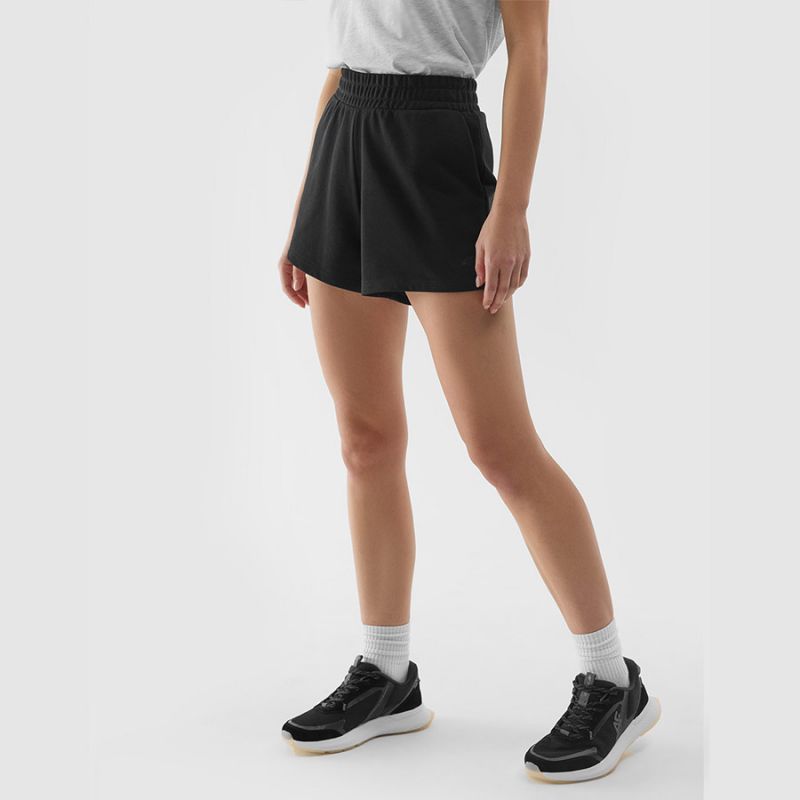 - Szorty dresowe damskie wykonane z dzianiny o średniej gramaturze 280 gsm, która sprawia, że są one miękkie oraz bardziej przewiewne.